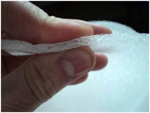 - вспененный полипропилен. Ему по силам скрыть маленькие перепады высот пола, он влагоустойчив и снабжает воздухообмен под настилом. Но в местах повышенной проходимости под действием нагрузок со временем материал начинает сминаться, и как следствие ламинат начинает оседать на этих участках. Появление скрипов есть первым показателем деформации материала. Еще среди недостатков возможно отметить низкие шумоизоляционные свойства;