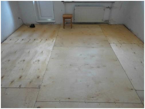 - Для выравнивания подойдет фанера либо страницы, изготовленные на древесно-стружечной базе. Толщина материала должна быть не меньше 15 мм (чем толще база, тем надежнее). Крепление страниц осуществляется вразбежку. Нивелирование поверхности производится методом подкладывания реек нужной толщины.