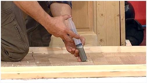 Кроме этого вы имеете возможность просверлить отверстия пара меньшего размера, нежели в первоначальный раз, а вместо использованного дюбеля с шурупом использовать жидкие гвозди. Это разрешает приклеить планки к основанию таким методом, дабы они прекратили скрипеть, но в этом случае кроме этого направляться зашпаклевать просверленные отверстия при помощи шпатлевки под дерево.
