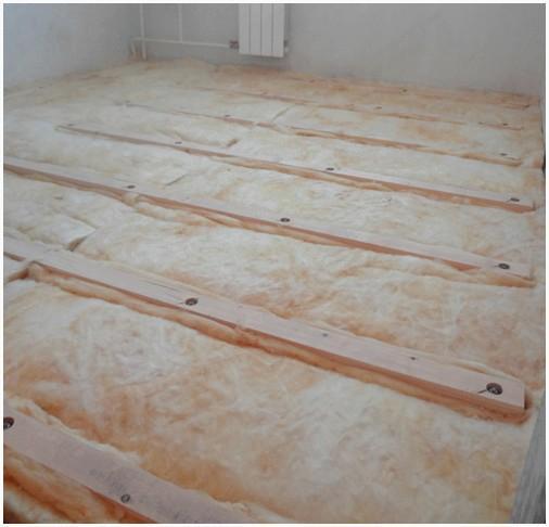- Прокладываем утеплитель между лагами, в качестве утеплителя возможно применять разные материалы — от керамзита до минеральной ваты и пенопласта