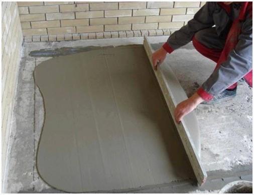 - На поверхность основания нанесите самовыравнивающиеся смеси для ремонта цементного пола, что имеют толщину 5 — 10 сантиметров.