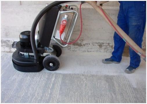 - Вся поверхность перед исполнением стяжки шлифуется посредством шлифовальной автомобили и шепетильно очищается от пыли и мусора.