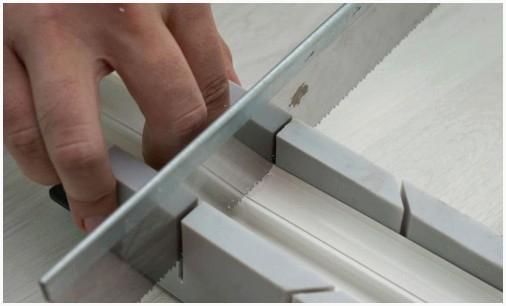 Перед тем, как резать напольный плинтус, снимите с него кабель-канал, его нужно отрезать раздельно. При резке пластикового плинтуса рекомендуется воспользоваться особым инструментом для резки – суслом и ножовкой по металлу либо дереву. Линию разреза отмечают несложным карандашом.