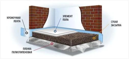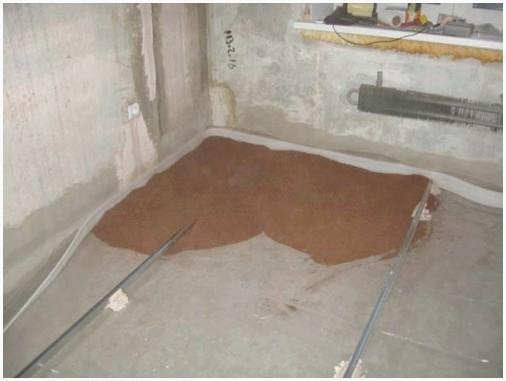 Сыпучий материал, в роли которого выступает керамзит, нужен для ровной поверхности, и для тепло- и звукоизоляции. Керамзит насыпается на пленку и разравнивается по отмеченной разметке правилом. В качестве засыпного материала может употребляться кремнеземный либо кварцевый песок, вспученный перлитовый песок, мелкозернистый шлак либо отсев производства керамзита. Все эти материалы владеют низкой гигроскопичностью, фактически не оседают, имеют высокую пористость и хорошую сыпучесть.