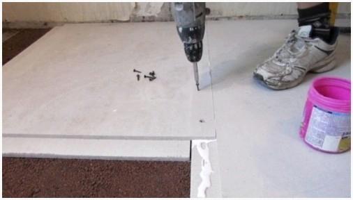 - В случае если в будущем укладывать сборный пол придется от противоположной входу двери, то направляться позаботиться об «островках». Делаются они из квадратов ДСП, ГВЛ либо фанеры и укладываются на слой керамзита;
