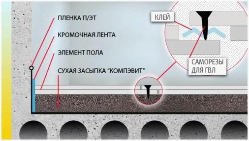 В случае если ремонт либо реконструкция пола производится в ветхих зданиях либо в зданиях с деревянными перекрытиями. Потому, что он разрешает значительно уменьшить нагрузку на несущие конструкции дома. В том случае, в то время, когда подготовить основание пола требуется в максимально маленькие сроки. Зимой, в то время, когда нет возможности сделать цементно-песчаную стяжку. При необходимости обустройства электрического теплого пола в деревянных межэтажных перекрытиях.