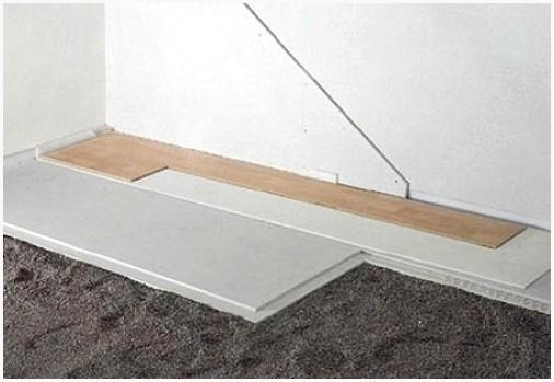 Данный этап разрешает всецело исключить звуковые мостики и предохранить пол от деформации при тепловом расширении. Для этого по периметру всего помещения оставляется зазор вдоль стенку равный 10 см, в который помещается теплоизоляционный материал.