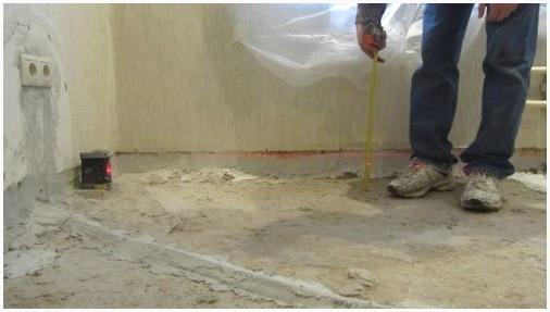 Посредством уровня (оптимальнее лазерного либо водного) на стены наносят отметки верхнего уровня засыпки.