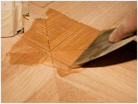 Наносить смесь необходимо при помощи резинового шпателя, а по окончании ее подсыхания поверхность паркетного пола всецело циклюется и лакируется.