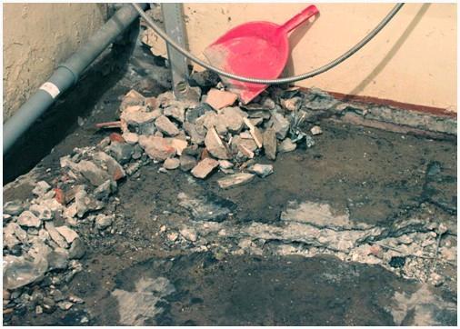 - Очистить от мусора и других ненужных дополнений все подпольное пространство, открыв ветхую стяжку либо плиты перекрытия, в случае если стяжки не было