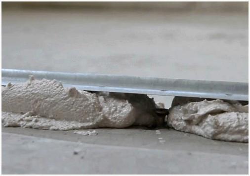 - Проклеить вдоль стенку демпферную ленту, компенсирующую расширение-сжатие стяжки при трансформации температурного режима и увеличивающую надежность цементного пола