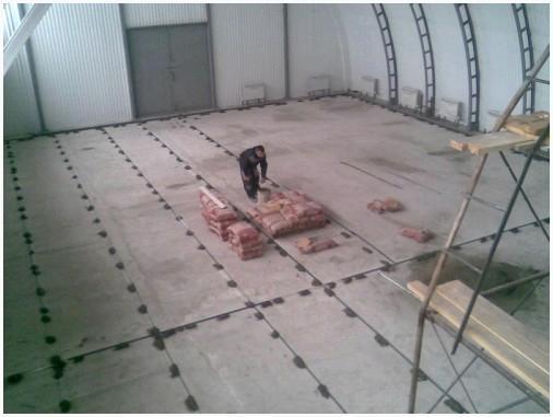 По окончании того, как вы завершили подготовительные мероприятия, приступите к установке разделительных жилок, наличие которых обеспечит большую прочность напольного покрытия. Если вы формируете однотонное напольное покрытие, установку разделителей создают аналогично той, что осуществляется в ходе монтажа цементной стяжки, другими словами с шагом, равным 1,5 м. При условии, что уровень пола не будет быть больше 25 мм, в качестве наиболее подходящих разделителей рекомендуется применять квадратные трубы диаметром размерами 25×25 мм.