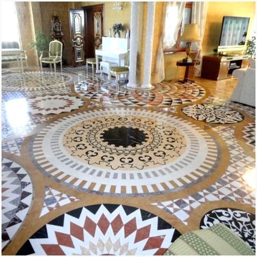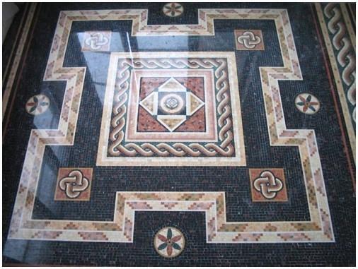 - В связи с тем, что мозаичный пол из мраморной крошки характеризуется долгим эксплуатационным сроком, нужно шепетильно отнестись к подбору в ходе его монтажа, дав предпочтение нейтральным либо классическим картинкам. Это обусловлено тем, что за долгое время работы напольного покрытия, картинки, которыми оно декорировано, выходят из моды, морально устаревая и становясь не актуальными. А с учетом того, что демонтаж ветхого покрытия есть достаточно трудоемким процессом, к вопросу подбора рисунка нужно подойти еще более шепетильно;