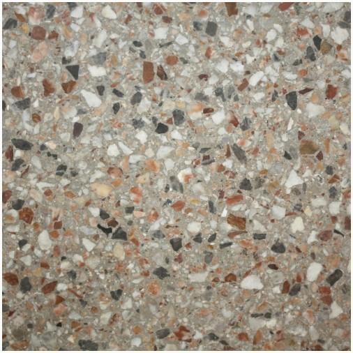 - Верхнего либо лицевого слоя, представленного цементно-мозаичной смесью, которая складывается из цементного раствора с добавлением мраморной крошки. Будучи кроме этого вариабельным параметром, толщина слоя мозаично-цементной смеси может быть около от 15 до 25 мм и зависит от размера фракции декоративных мозаичных включений.