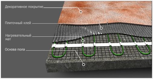 Электричество подается на кабель, и он нагревается и греет пол. Перед яркой подачей на нагревательный элемент электричество проходит через терморегулятор, который разрешает включать и выключать тёплый пол, и регулировать температуру тёплых полов. К тому же терморегулятор при сильном нагревании отключает тёплый пол машинально, помогая не допустить поломку самого нагревательного элемента.