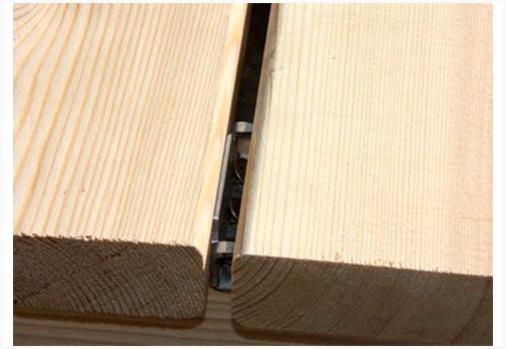 - Кое-какие виды лаг имеют паз на всей протяженности, который позволяет вставить клеммы из резины. Такие приспособления действенно действуют при температурных расширениях материала. Особые усики разрешают компенсировать зазор между досками. К тому же они окажут помощь выставить равномерный зазор по все длине доски.
