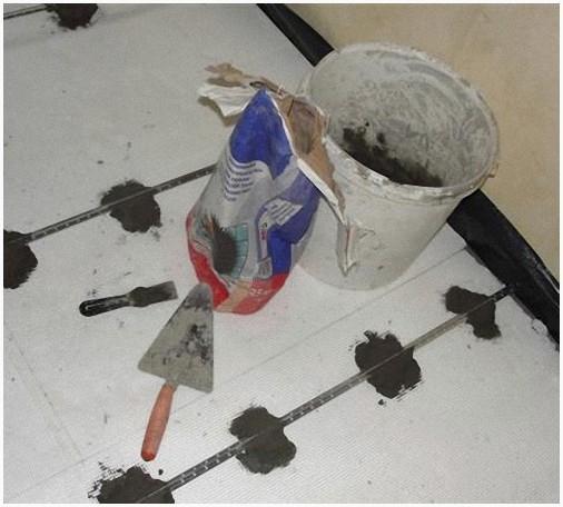 - При установке саморезов их уровень регулируется посредством прочной нитки либо лески, которая натягивается между ними по всему протяжению. Уровень регулируют под нулевой, потом вдоль натяжки делают линию из маленьких кучек раствора. Смесь для данной цели готовят из песка и цемента, довольно часто додают в него мало алебастра, дабы ускорить процесс отвердевания. Кроме этого применяют в некоторых случаях не раствор, а особые смеси для штукатурки. Но практикующие строители рекомендуют использовать для сигнальных горок тот же раствор, из которого будет выливаться стяжка, пол будет долговечней и надежней.