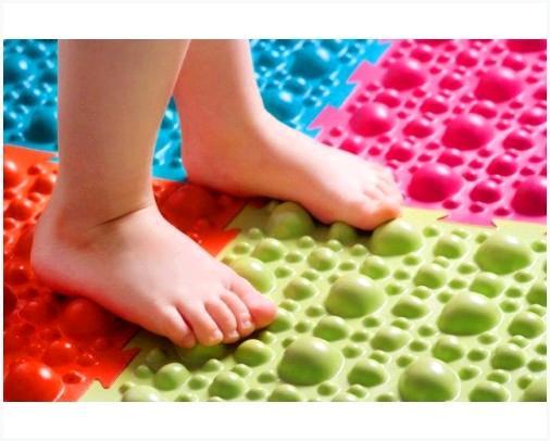 - Это прочные и яркоокрашенные элементы единой конструкции, каковые имитируют разные неровности, скажем, галечный пляж либо траву. Пробегая по таковой разнофактурной поверхности кроха, по сути, делает действенный и приятный массаж стоп.