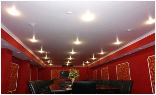 При выборе цвета натяжного потолка необходимо учитывать, что большая часть цветов натяжных потолков меняют свою насыщенность и интенсивность под действием света. При ярком освещении светло синий, светло синий и другие оттенки данного спектра темнеют, а оранжевый, зеленый и красный — светлеют. В случае если учитывать такие трансформации, то, само собой разумеется, лучше провести опыты с разными цветами, перед тем как решить о покупке натяжного потолка.