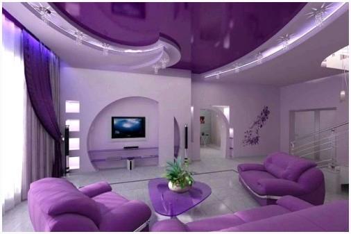 Сиреневые натяжные потолки пастельных оттенков снимают напряжение, успокаивают. Они превосходно подойдут для спален и комнат отдыха. Яркие холодные оттенки увеличивают визуально высоту помещения.