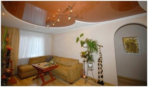 Как выбрать цвет натяжного потолка и сочетание тонов для спальни? В большинстве случаев для спален советуют выбирать натяжные полотна в спокойных тонах. Это смогут быть полотна кремового, белового, светло-зеленого, голубого, розового окраса. Потолки наряду с этим смогут быть как многоцветными, так и однотонными, и двухтонными. В гостиных хорошо смотрятся натяжные потолки, выполнены в двух цветах, наряду с этим они будут подчеркивать оригинальность неспециализированного интерьера.