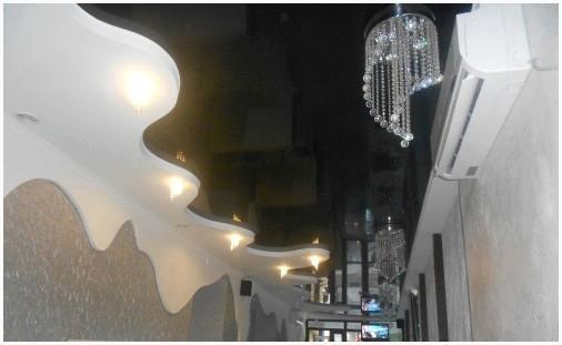 Шоколадные натяжные потолки считаются универсальными и подходят к разным интерьерам. Их устанавливать возможно в кухне, гостиной, ресторанах и кафе. Они кроме этого превосходно сочетаются со стенками теплых тонов. Натяжные полотна чёрного цвета выглядят очень благородно.