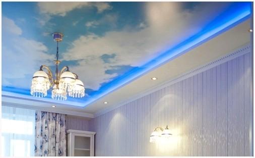Потолки низкие по высоте возможно оформить посредством глянцевого натяжного полотна холодного оттенка. Для визуального подъема потолочной поверхности вблизи стен делают по периметру потолок мало ниже, форма пониженного потолка наряду с этим возможно любой. Применение ярких оттенков делает потолочную поверхность, что окрашена в такие цвета, визуально более отдаленной.