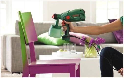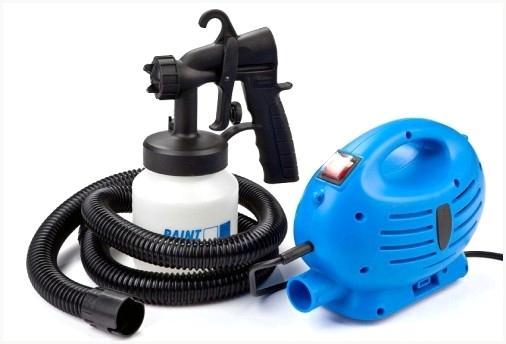 Для таких целей подходит самый простой ручной краскопульт без всяких «наворотов», цена которого около 400 рублей. А вот в случае если вам необходимо работать на высокой стремянке, стоит выбрать электрический краскопульт, поскольку он более компактный и удобный для переноски и применения на высоте, и на спине при помощи ремня, что намного облегчает покраску.