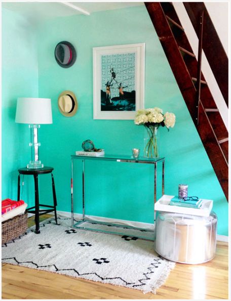 Краска для вашего потолка обязательно должна быть яркой, глянцевой либо полуглянцевой. Глянцевый блеск отражает свет, что создаёт чувство объёмного пространства, а вот матовая краска больше подойдёт, в случае если вам нужно скрыть недостатки потолка. Самые подходящие тона, это белый и холодные оттенки, но убедитесь, что цвет потолка будет ярче цвета ваших стен. Весьма интересно будет смотреться плавное осветление цвета, начиная от пола заканчивая потолком. К примеру, более чёрный зелёный цвет делается всё ярче ближе к потолку, и остаётся светло зелёным на потолке. Таковой плавный переход расширит помещение и увеличит высоту.