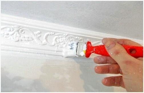 По окончании того, как вы приклеили потолочный плинтус и устранили все недостатки, возможно приступить к окраске плинтуса. Процесс окрашивания плинтуса считается необязательным, но если вы желаете своему потолку придать оконченный и более привлекательный вид, то нужно плинтус все-таки окрасить.