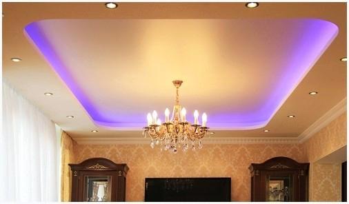 - Карниз для скрытой подсветки. Такие изделия являются профиль из полистирола, что закрепляется к стенке на простой клей. Конкретно к стенке либо внутренней поверхности карниза за ним приклеивают светодиодную ленту. Карниз под натяжной потолок призван подсветку делать скрытой, пряча источники света от глаз зрителя.