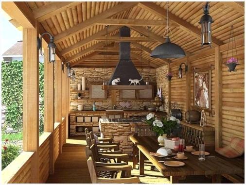 - В случае если для потолка применять недорогие доски, а хочется иметь как раз деревянный потолок, то возможно приобрести блок-хаус. Он имитирует поверхность из оцилиндрованных бревен либо брус. Одна панель имеет рельеф двух либо трех планок. Выполняется из цельной натуральной древесины, исходя из этого универсален в применении (подойдет для обшивки потолка на веранде либо в беседке). В интерьере таковой потолок смотрится первобытно и весьма атмосферно. Но большая цена для того чтобы деревянного потолка делает его менее популярным, если сравнивать с вагонкой. Крепят его на обрешетку, сами панели фиксируется замками.