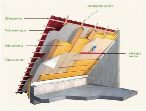 Утепление деревянного потолка мансарды, пирог будет выглядеть следующим образом: