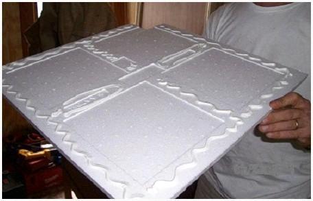 Полистирол, из которого изготовлены плиты — это легкий и экологичный материал, владеющий хорошими звукоизоляционными свойствами. Изделия из него легко режутся несложным канцелярским ножом и быстро монтируются.