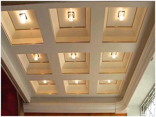 Предусмотреть возможно кроме этого и розетки как дополнительный материал декора. Кроме этого в таковой потолок комфортно вшивать систему подсветки. Имеется и другая техника создания аналогичного потолка – отсутствие каркаса, но кессоны сделаны из гипсокартона, все части потолка необходимо стыковать по типу пазла так близко, чтоб конструкция смотрелась цельной и завершенной.