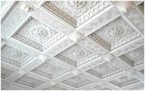 Кессонный (лакунарный) потолок – это особенный вид потолка, который складывается из углублений, балок и ячеек («кессон» — многоугольное углубление). Еще такие потолки именуют декоративными. Что касается кессонов, то они смогут быть не только квадратными, но и круглимы. Среди кессонов известны поперечные и продольные балки с орнаментом, лепные розетки, карнизы, бордюры, профилированные переходы к стенкам, живопись на поверхности потолка.