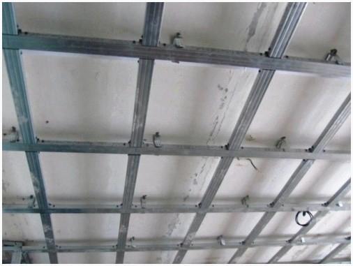 - В случае если работа по монтажу потолка проводились не самостоятельно, в любом случае нужно будет открепить прогнувшуюся плиту и проверить, как сделана обрешетка. Правила ее установки отличаются от тех, каковые используются для стен. Так, ход между направляющими рейками не должен быть больше 40 см. А сама конструкция выполняется в виде квадратов 40х40см.