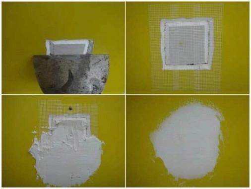 - Стартовой шпаклевкой заполняются эти углубления с маленьким припуском по бокам, каковые должны иметь сглаженные края.