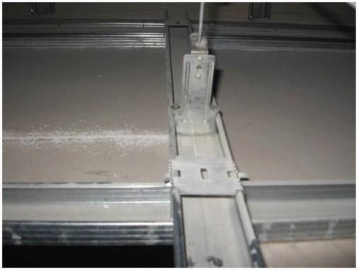 - Потом на основные ряды профилей сажаются потолочные профили. Работа выполняется двухуровневыми соединителями с замками.