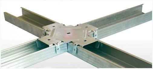 - Потом идет установка продольных профилей. Они соединяются с поперечными профилями «крабами», — особыми приспособлениями, и саморезами. По окончании выполнения данной работы наш каркас пригоден к обшивке гипсокартоном.
