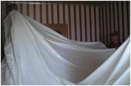 Одним из правил подготовки натяжного потолка к монтажу есть подготовка комнаты. Направляться распаковывать полотно в помещении с температурой до 40-50 градусов. При помощи тепловой пушки нагревают помещение. Для натяжных потолков газовый баллон есть страшным и серьёзным устройством для установки потолка, в случае если на объекте возможно подключиться к электропитанию, то применяйте электронагрев на расстоянии как минимум в 1,5 метра от полотна, наряду с этим медлительно разворачивая для прогрева всей поверхности пленки.
