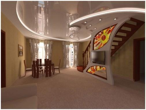- Перед созданием «декораций» обратите внимание на бессчётные фотографии, представленные в интернете. Неграмотно подобранный контур может привести к громоздкости, утяжелению любых подвесных (натяжных) конструкций, особенно это относится многоуровневых потолков.