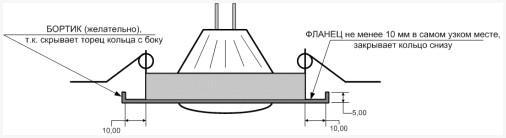 - Для светильников под натяжной потолок заблаговременно устанавливаются стойки, кронштейны, термоизоляционные кольца.