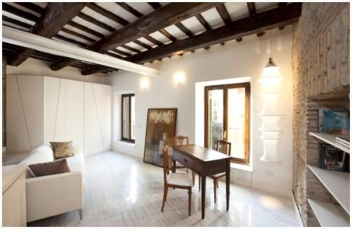Потолочными балками сейчас декорируют потолки не только в сельских жилищах, но и в загородных зданиях и городских квартирах из кирпича и бетона. Эти элементы аутентичного интерьера являются весьма уж привлекательными для обитателей «каменных джунглей». Исходя из этого открытые балки все больше декоративен , не теряя наряду с этим своей функциональности.