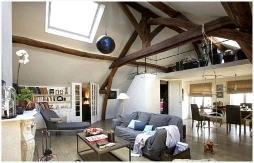 - Оформление чердачных помещений. На мансардах и чердаках оформление скатного потолка посредством балок окажет помощь внести в пространство упорядоченность и гармонию.