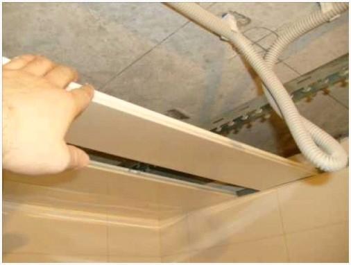 - Принципиально важно закрепить коммуникации, каковые будут размешаться под реечным потолком, дабы не допустить их случайное падение на панели и повреждение установленной потолочной конструкции.