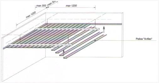 - Вдоль реек (рейки загибаются особым образом в заводских условиях).