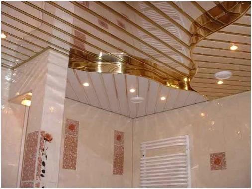 - Повышенная влагостойкость, благодаря которой реечные потолочные системы смогут употребляться кроме того в помещениях с высокой влажностью (в ванных, в бассейнах, саунах и без того потом). Кроме этого допускается их мыть и чистить любыми моющими средствами (без абразивных частиц в составе). Принципиально важно учитывать, что применяя оцинкованные потолки во мокрой среде, все имеющиеся детали направляться обработать антикоррозийными составами;