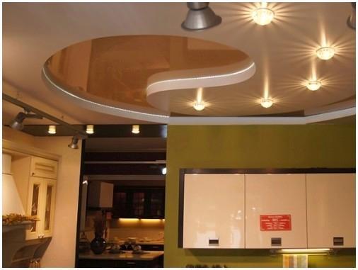 Сложный многоуровневый потолок образуется двумя вариантами: применение гипсокартонных конструкций либо профилей, образование уровней при помощи полотен и вариант с применением гипсокартона, который считается мало несложнее и эргономичнее. Значительно чаще при изготовлении многоуровневого сложного натяжного потолка экспериментируют с сочетанием цвета и разновидностью материала, итог получается уникальным и необыкновенным. Конструкция способна скрыть любой, кроме того весьма явный недостаток потолочного пространства. Значительно чаще применяют двухярусные типы конструкций.