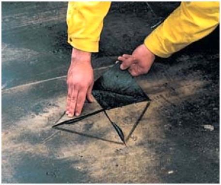Сперва вовнутрь отверстия наносится смола либо битумная мастика. После этого укладывается кусок рубероида, а сверху еще один слой битума. Ожидать подсыхания не требуется, а нужно сразу же вернуть отогнутые треугольники на место. Сейчас остается лишь залатать появившиеся разрезы при помощи еще одной заплатки. Основное – дабы размер куска был на пара сантиметров больше поврежденного участки. Поверх заплатки нанесите дополнительный слой мастики – так вы добьетесь нужного результата скорее.